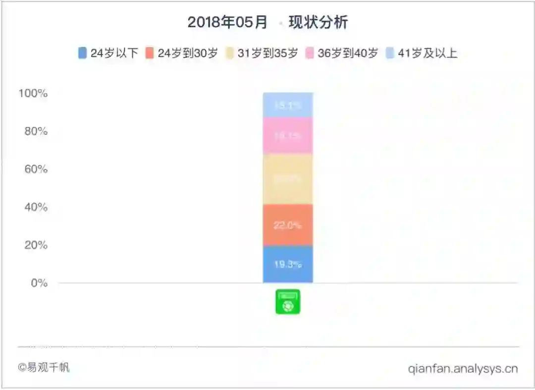 在年龄分布上,2018年5月,31岁到35岁用户占比26.6%居首,24岁到30岁用户占比22.0%紧随其后,24岁以下年轻用户和36岁到40岁用户占比均在19%左右。