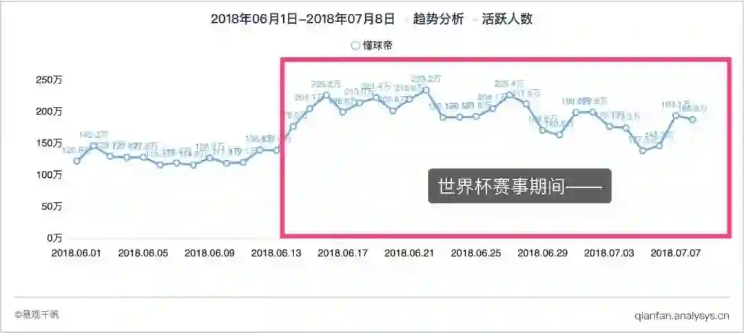 四年磨一剑,说的是角逐绿茵场的足球健儿,对于垂直资讯服务的懂球帝App也同样适用。 敛聚舆论关注和用户流量的超级IP“世界杯”,为专注提供足球资讯的懂球帝App也带来了用户活跃大爆发。