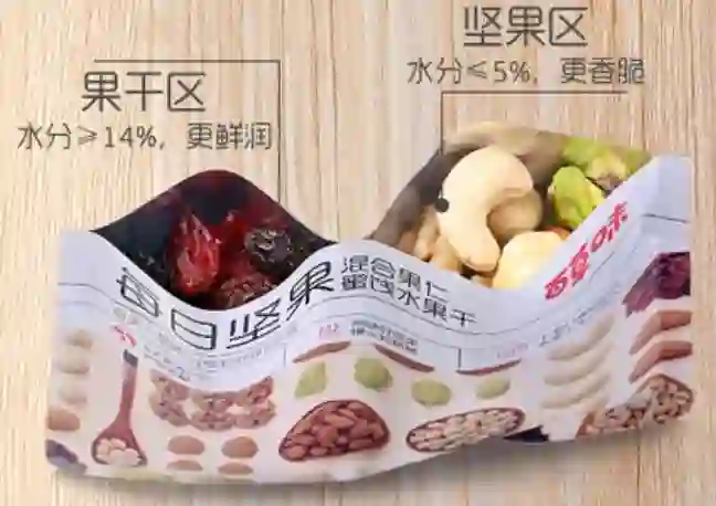 精选8种坚果/果干,来自优质产地,慢火烘焙,高温提香。尤其独特的“干湿分离”鲜鲜装,把干燥的坚果和需要一些水分的果干隔离开,使得水果干口感更加甜润,并确保坚果仁更加香脆,品质更加稳定。