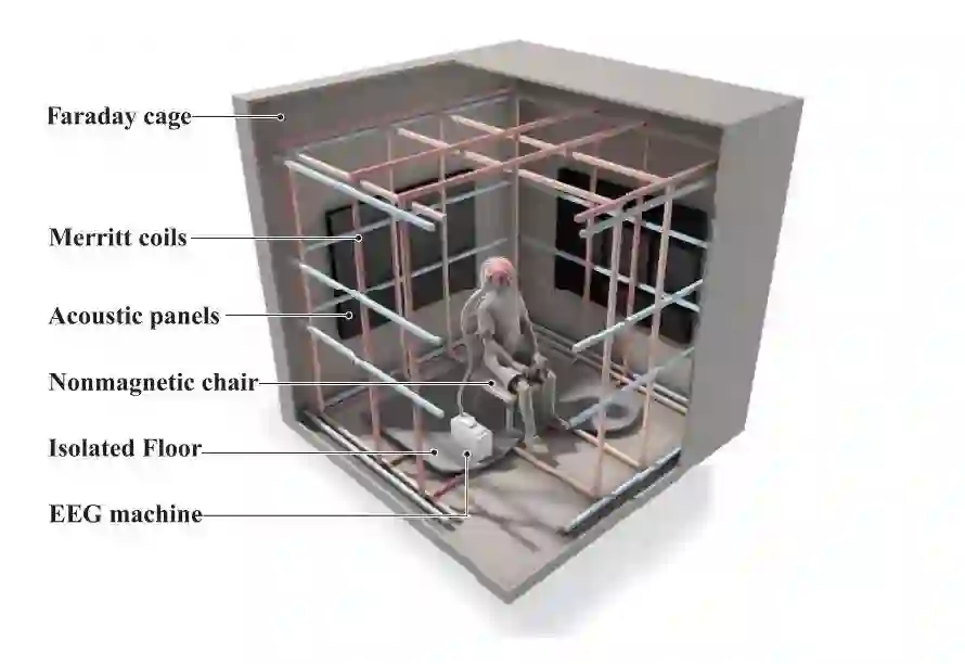 为了能精准地控制磁场,专门做了一个叫“法拉第屏蔽笼”的装置,请被试者坐在一个能够隔绝地磁场、且能够精准控制磁场的房间里。