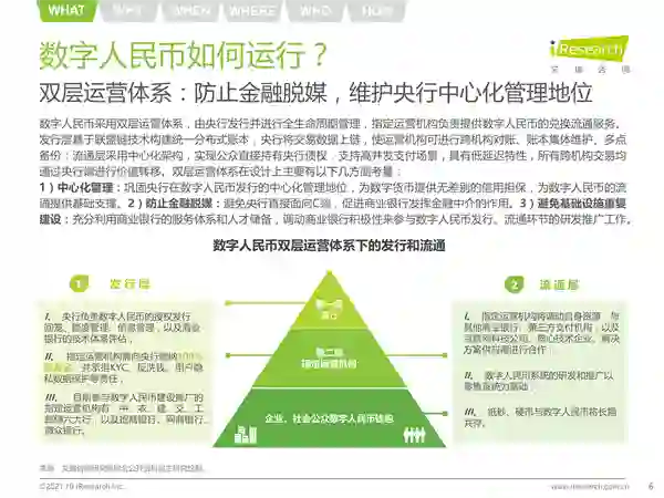 1)中心化管理:巩固央行在数字人民币发行的中心化管理地位,为数字货币提供无差别的信用担保,为数字人民币的流通提供基础支撑。
