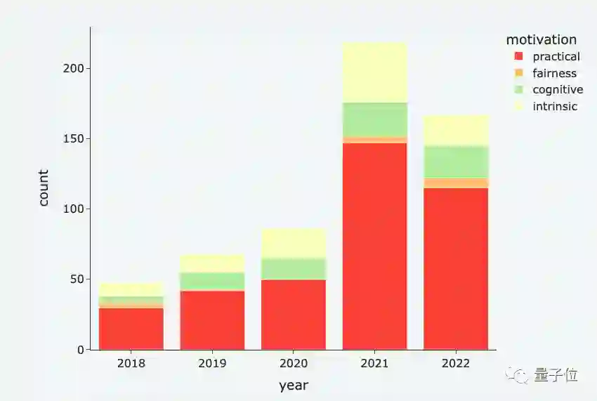 下图展示了2018-2022年不同动机泛化研究的占比数量,其中实用性仍为大头: