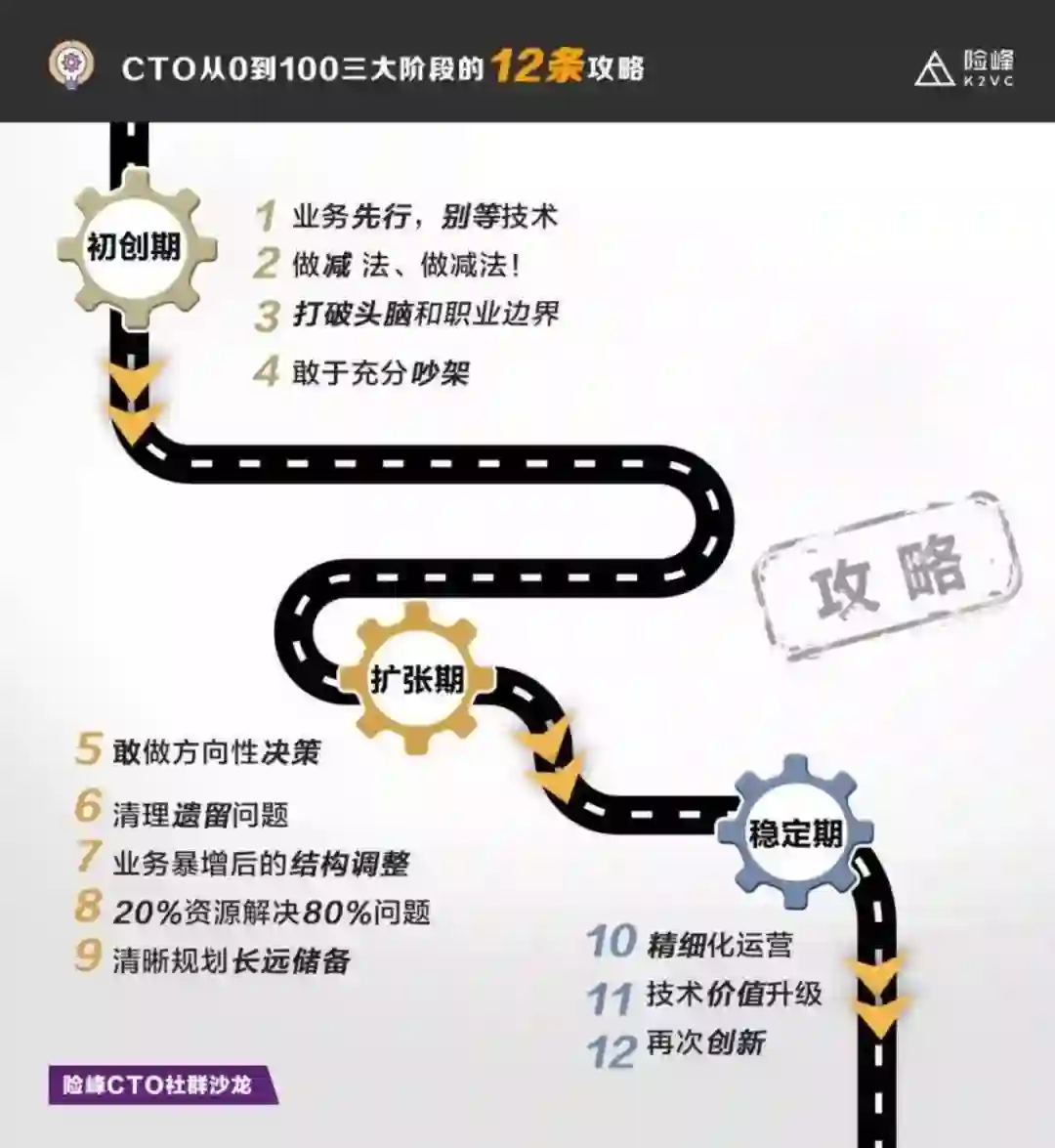 CTO在扩张期的角色不同于初创期,其使命不再是带领团队探索业务方向,而是要做出方向性决策的领航人,也是一个对自身更大的挑战。