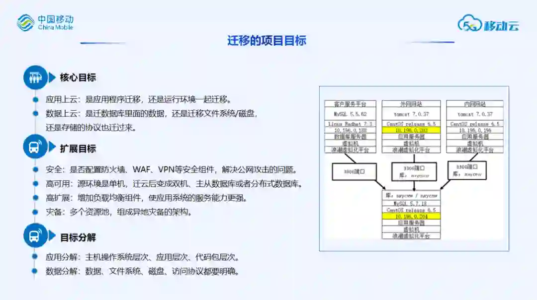 迁移的核心目标需要考虑客户是应用上云还是数据上云,还是两者结合: