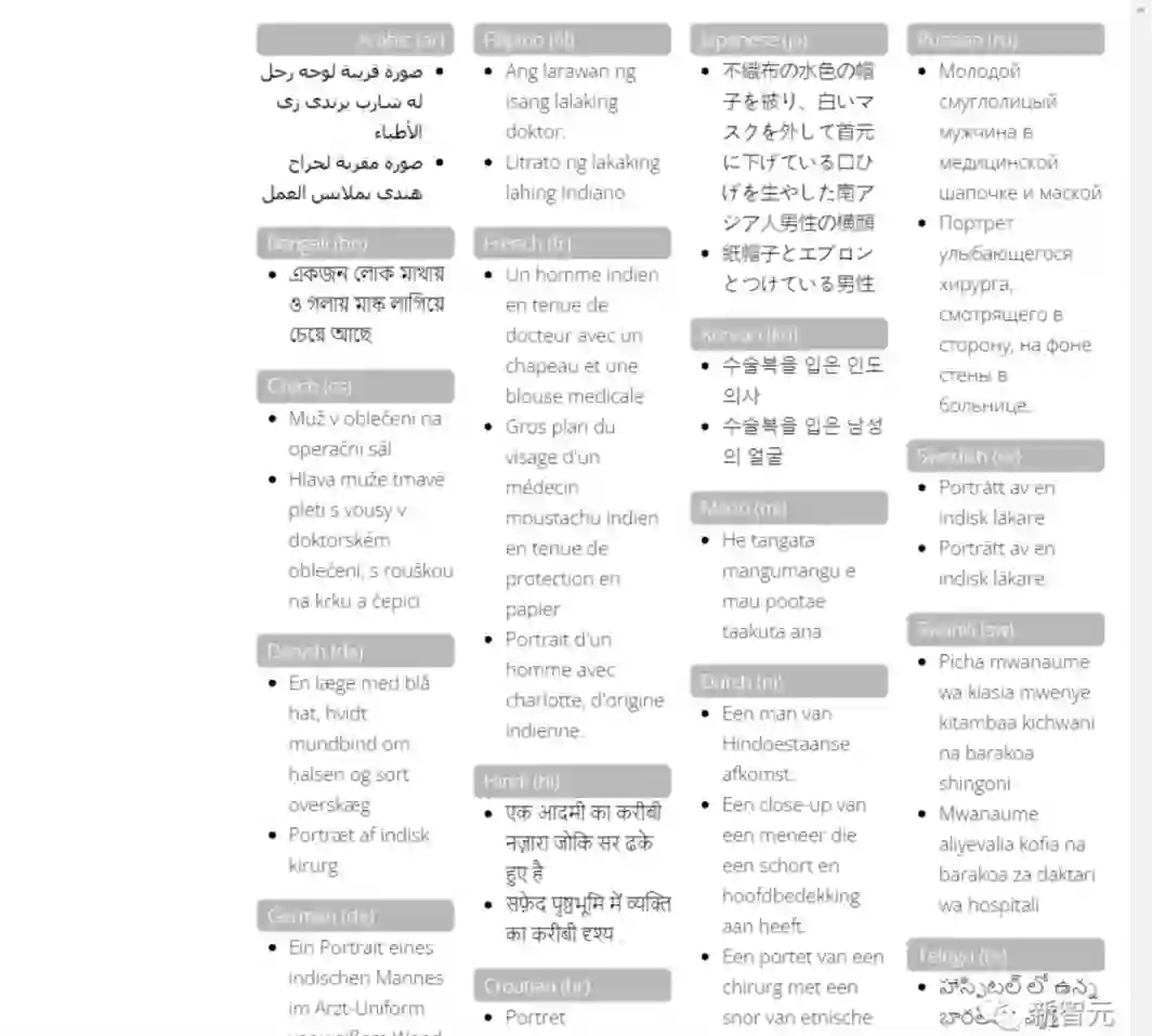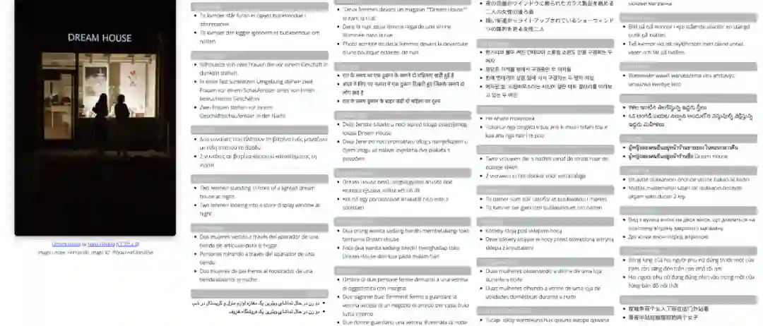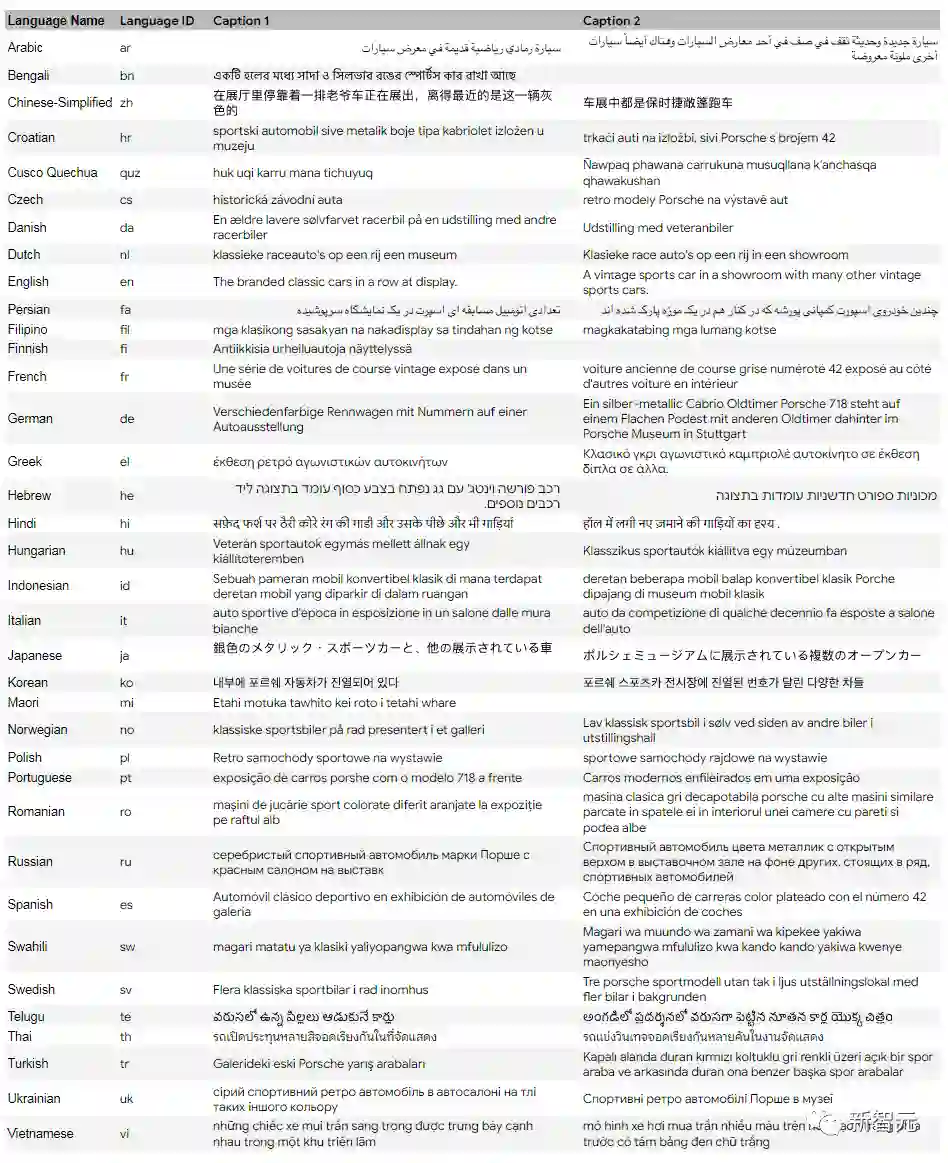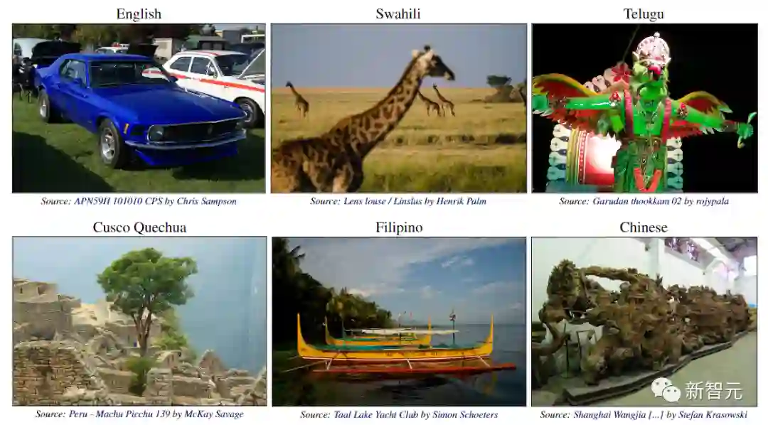 图像内容也是精挑细选,都是这36种语言使用者所在地收集的图像。为了避免直接翻译导致的标注问题,所有图像描述都由人工编写。