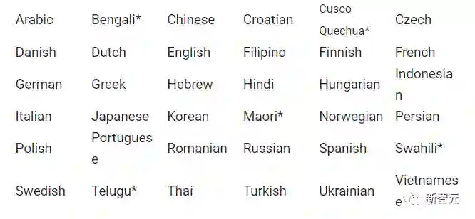 36种语言中,研究人员选择了30种英语以外的语言,主要是基于语言在网络内容中所占的比例。