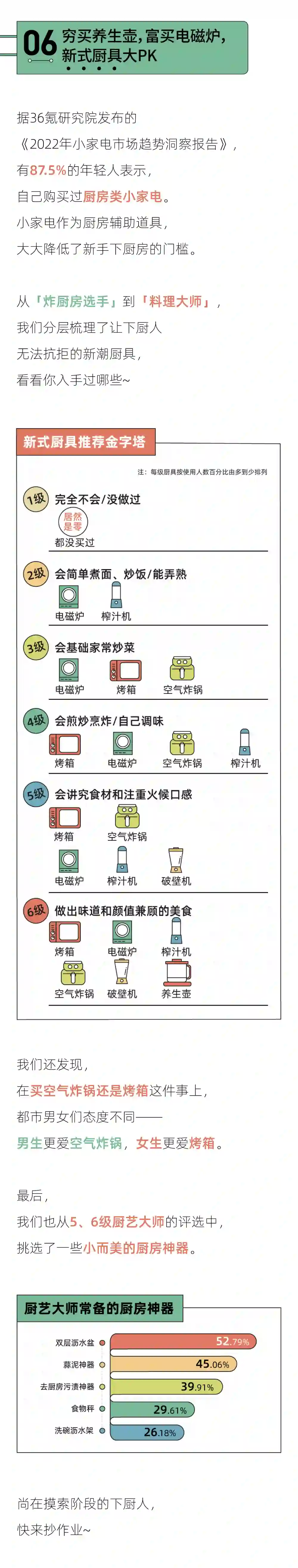 2、厨房小家电拯救做菜懒癌:电磁炉、烤箱是最受年轻人欢迎的厨具。