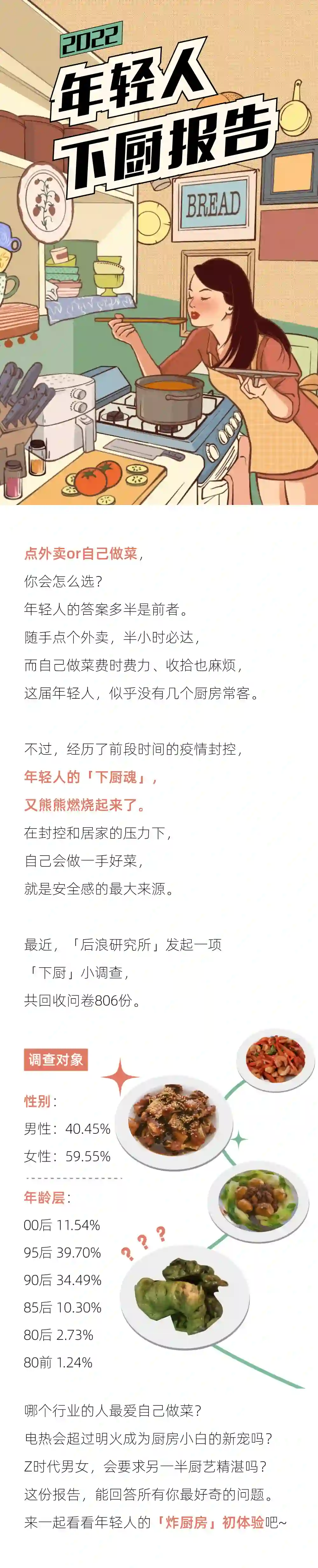 做饭,是人类必备的生存技能吗?再来回顾这个问题,年轻人们的答案或许已经不同了。作为躺在外卖上长大的一代人,Z时代不用再为温饱烦恼。自己做饭,不是一种生存技能,而是“生活技能”——为生活增加更多小确幸的技能。