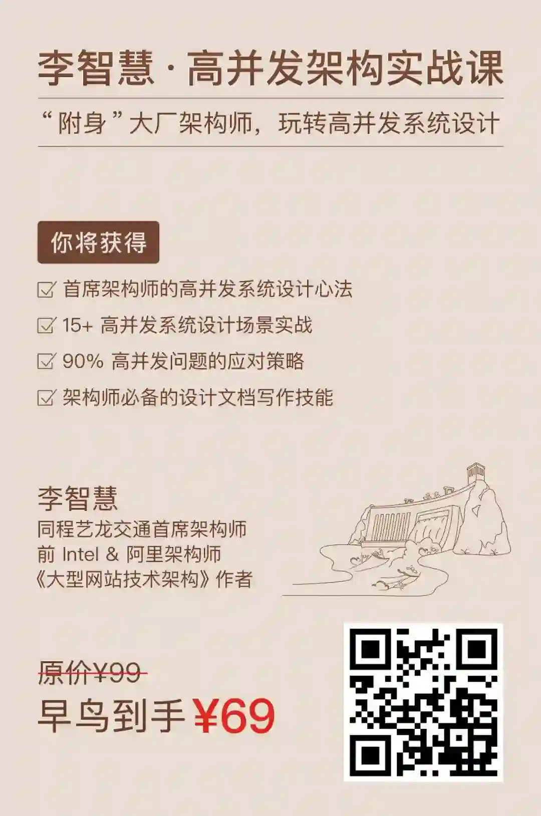 点击「阅读原文」,仅需 ¥69,跟着首席架构师玩转高并发系统设计。
