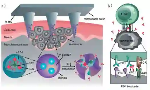 图 3 递送免疫检查点抑制剂的微针透皮贴片