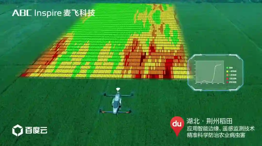 比如在农业方面,农民通过使用百度云与麦飞科技合作的农业遥感智能监测系统,引入边缘计算,对农作物病虫害实施智能化监测,并完成精准施药,能够将农药使用量降低50%。百度正利用AI能力让农业生产提质增效。当然,农业的AI化空间还远不止于此。