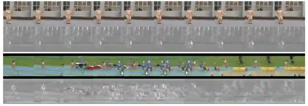 此外,我们也对MiCT-Net所学的特征图进行了可视化,如图10所示。上面的示例是一个慢动作太极视频,MiCT-Net学到的特征信息强调了背景及人体信息,对于慢动作的识别提供了有效的信息;而在下面的相对激烈的跳远视频中,MiCT-Net学到的特征信息更多的集中在运动区域。可见,我们提出的MiCT-Net能够很好地适应视频内容,学到有效的时空特征。