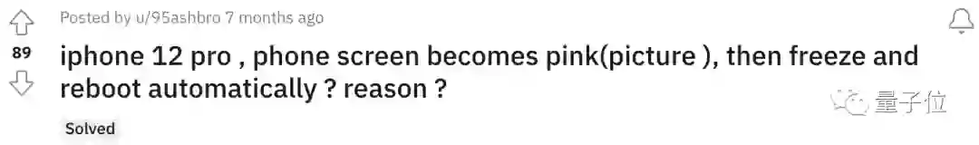 从他反馈的图片中可以看出,屏幕变成了粉紫色,还带渐变色和白块,和国内用户投诉的问题如出一辙: