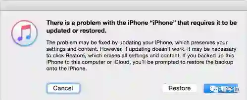 然后把手机连到电脑上运行iTunes,看到下图后点击“Restore”进行恢复。