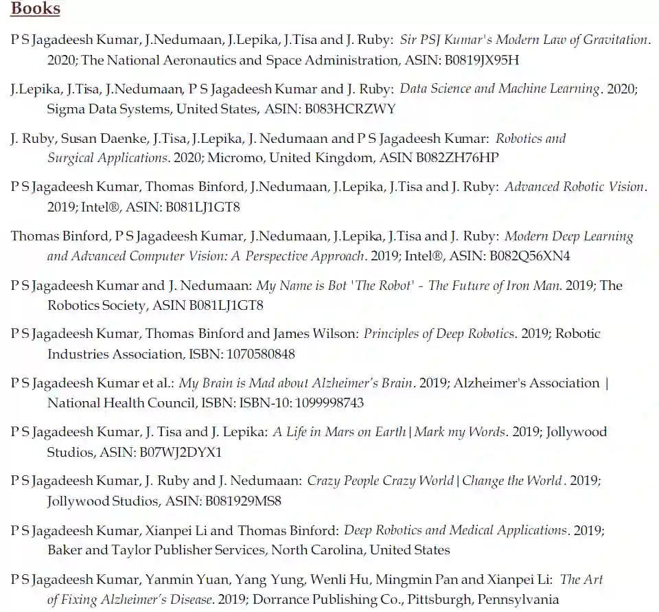 Jagadeesh Kumar「获得」的奖项包括:「多学科研究之父」、「印度莎士比亚」、「杰出研究者」、「最佳论文奖」……