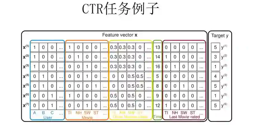 推荐系统有很多方法去做,但是这个问题也可以转化成 CTR 预估的一个任务。比如豆瓣的电影推荐,你推荐的电影用户会不会去看?着就是一个典型的把推荐问题转换成 CTR 预估任务的例子。