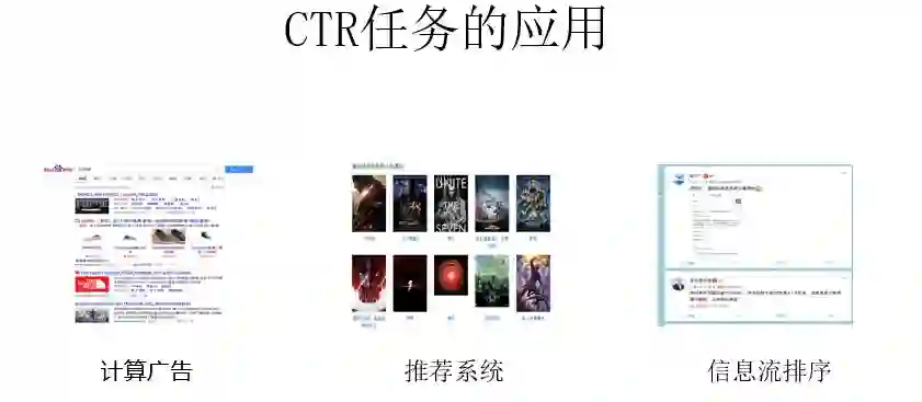 计算广告是比较典型的 CTR 预估应用场景,比如有很多广告,哪些广告用户会点呢?