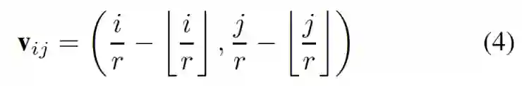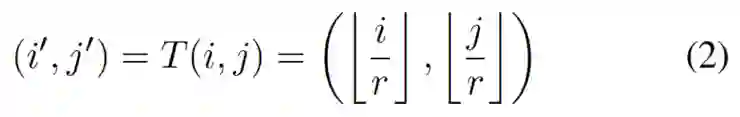 对于 SR 图像上的每个像素(i, j),Location Projection 的作用是找到与像素(i, j)对应的 LR 图像上的像素(i′, j′)。本文认为,像素(i, j)的值是由像素(i′, j′)的特征所决定。下面的投影算子可映射这两个像素: