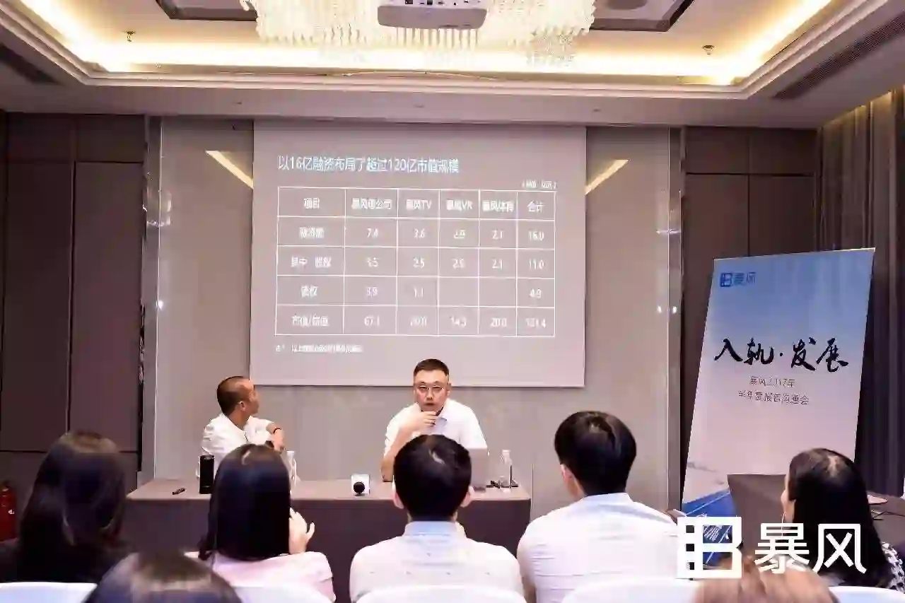 “估值按照我们完成公开募资时的水平,暴风TV 20亿,暴风VR 14亿,暴风体育是20亿,总共121亿。TV增长了300%,VR增长了160%,体育增长了180倍。这就是我们的融资结构和它撬动的价值,我把数字直接地列出来,就是想跟大家陈述事实。”姜浩表示。