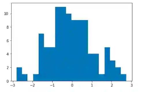 %matplotlib inlineimport matplotlib.pyplot as pltfrom numpy.random import normalx = normal(size=100)plt.hist(x, bins=20)plt.show()