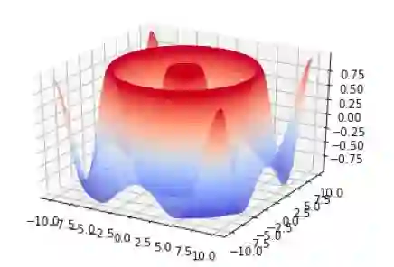 from matplotlib import cmfrom mpl_toolkits.mplot3d import Axes3Dimport matplotlib.pyplot as pltimport numpy as npfig = plt.figure()ax = fig.gca(projection='3d')X = np.arange(-10, 10, 0.1)Y = np.arange(-10, 10, 0.1)X, Y = np.meshgrid(X, Y)R = np.sqrt(X**2 + Y**2)Z = np.sin(R)surf = ax.plot_surface(X, Y, Z, rstride=1,cstride=1, cmap=cm.coolwarm)plt.show()