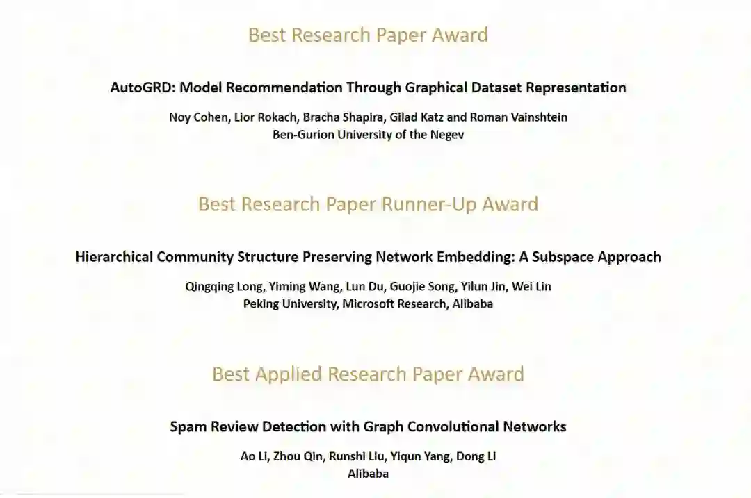 CIKM 2019 论文奖项分为三个:最佳研究论文、最佳应用论文与最佳 Demo。