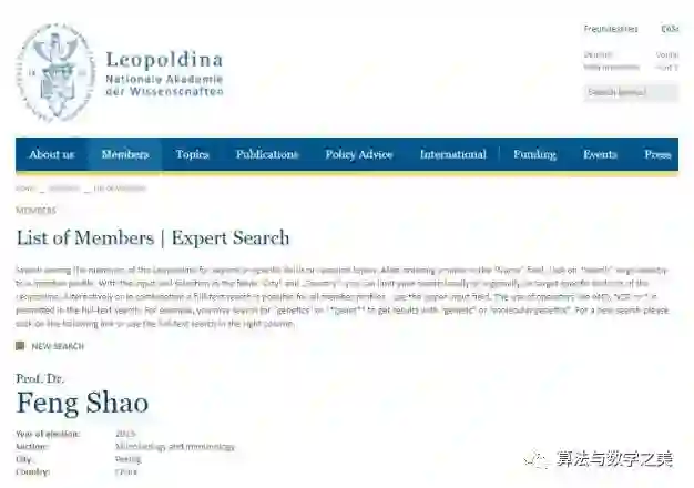 近期,据德国国家科学院(German National Academy of Sciences)官方网站显示,北京生命科学研究所(NIBS)资深研究员、科研副所长、中国科学院院士邵峰新当选为2019年度德国国家科学院院士。
