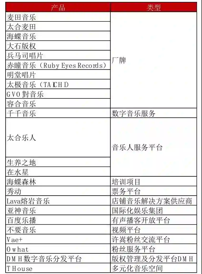 官网显示,太合音乐集团旗下产品集群多达24个,覆盖音乐版权、音乐厂牌、数字音乐平台和粉丝服务平台等。