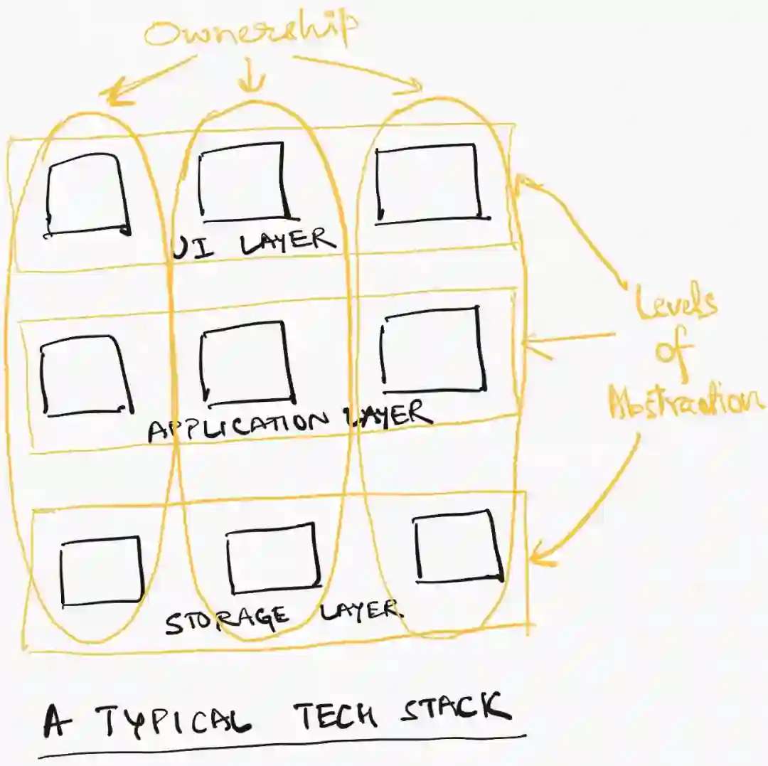 当我们看技术栈时,所有权范围应该如何运行?它们应该沿着具有类似抽象级别的组件水平运行,还是应该垂直运行,将系统分组以生成端到端的业务价值?