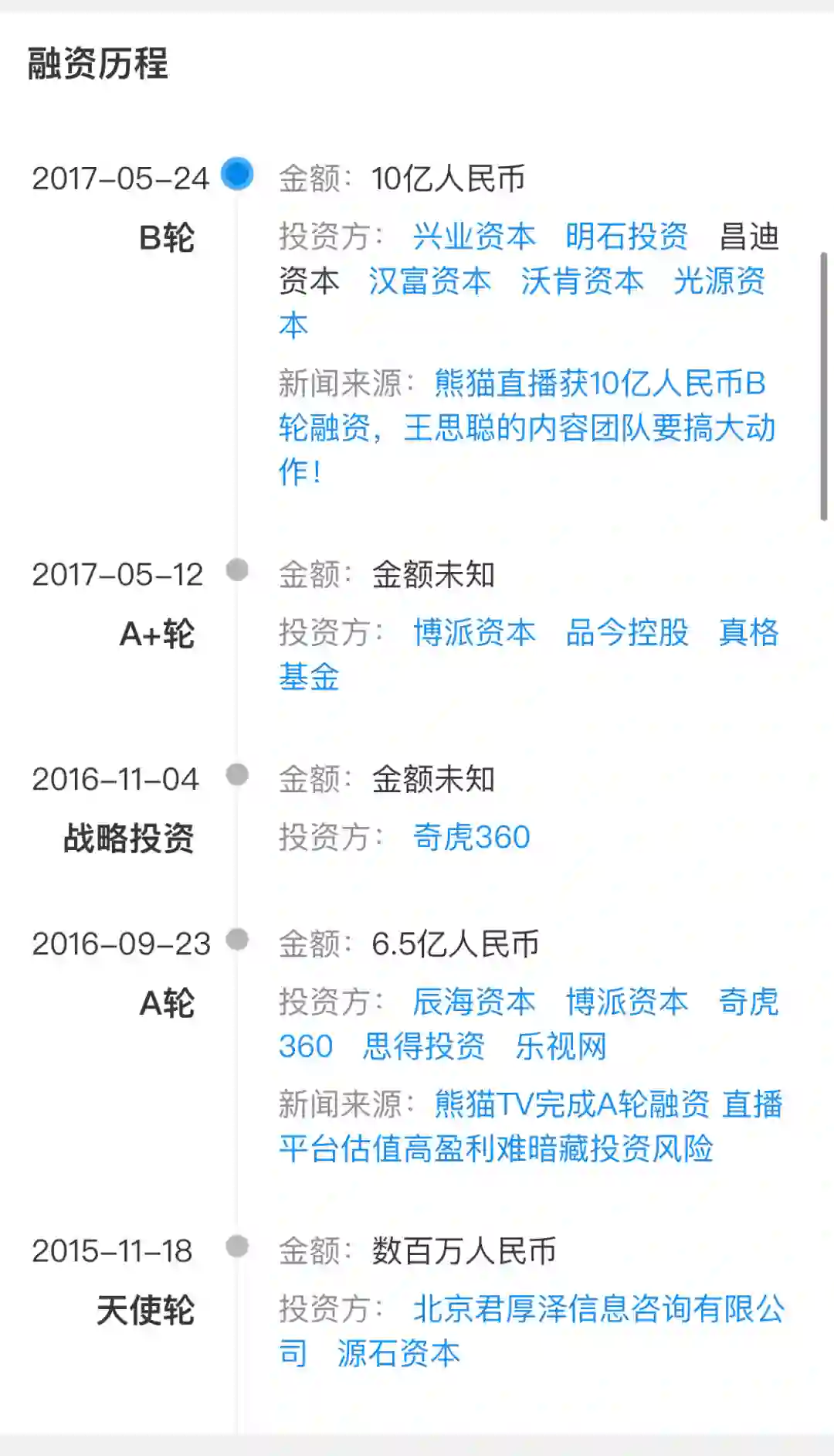 熊猫互娱融资历程。数据来源:企查查