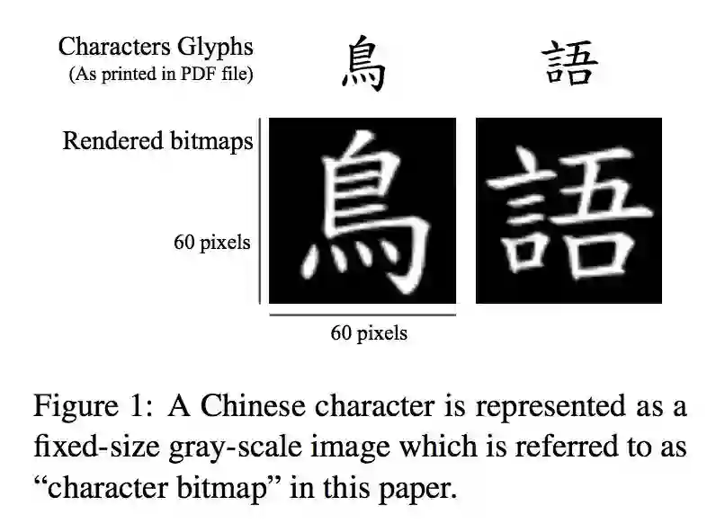 本文是台湾大学发表于 EMNLP 2017 的工作,论文提出了一种基于中文字符图像的 embedding 方法,将中文字符的图像输入卷积神经网络,转换成为词向量。因为中文是象形文字,这样的词向量能够包含更多的语义信息。