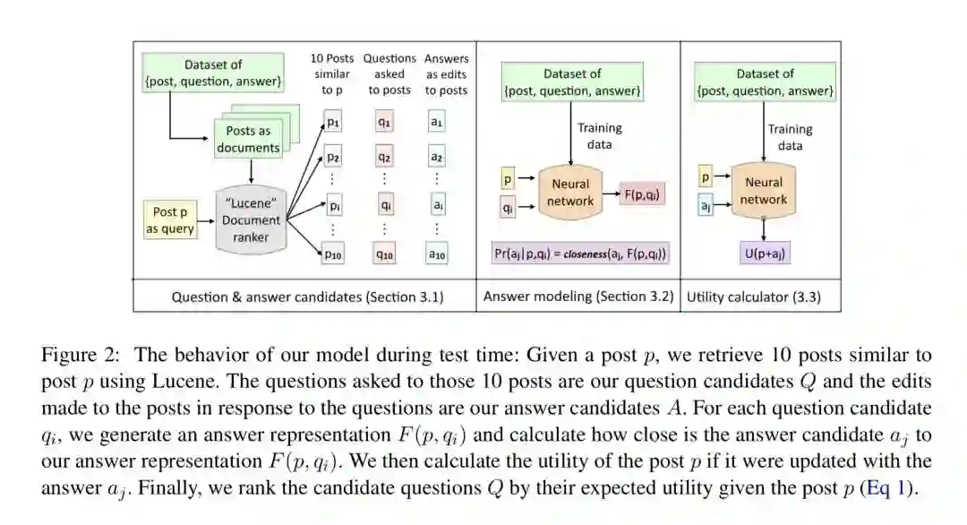 本文是马里兰大学发表于 ACL 2018 的工作,论文基于完全信息期望值(EVPI,expected value with perfect information)架构构建了一个用于解决澄清问题排序的神经网络模型,并利用问答网站“StackExchange”构建了一个新的三元组(post, question, answer)数据集,用于训练一个能根据提问者所提出的问题来给出澄清问题的模型。