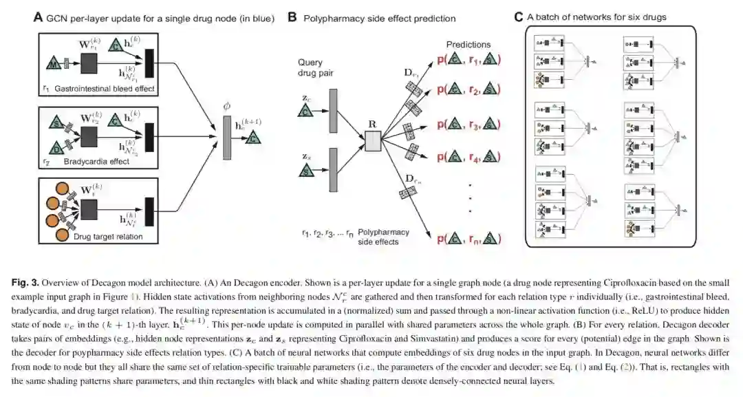 本文来自斯坦福大学,论文将 Graph Convolution Neural Network 应用于药物副作用研究中。本文提出了一种通用的多关联链路预测方法——Decagon,该方法可以应用于任何多模态网络中,能够处理大量边缘类型的多模态网络。