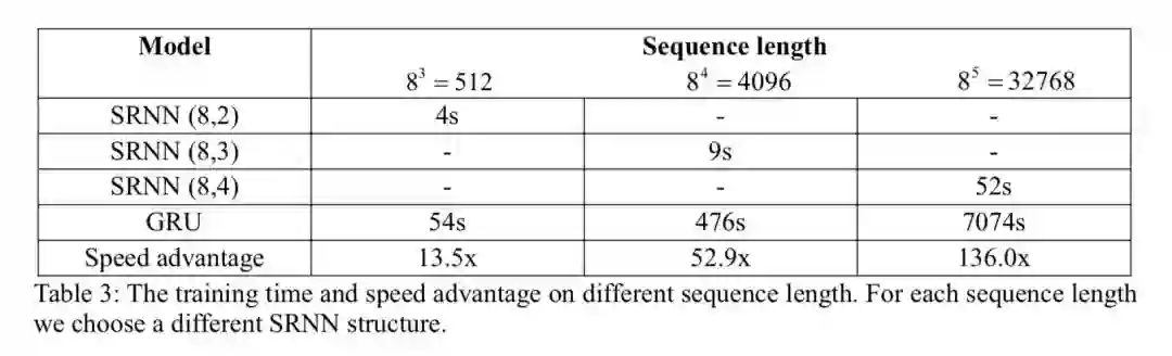 SRNN 把 RNN 序列分成每份 K 份,这样每份可以各自运行(并行),得到长度为 N 的新序列,后续可以新序列上继续如上操作,一直到序列长度等于 1 或满足需求。通过在 6 个较大规模的情感分类数据集上测试,相比于 RNN,SRNN 都取得很大的性能优势。