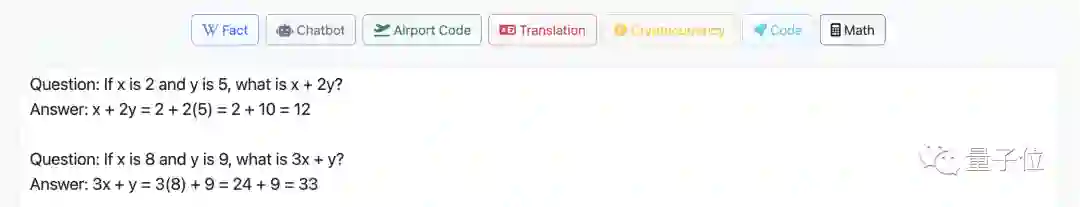 目前可以实现的功能有:询问事实,直接聊天,航班代码,多语言翻译,加密货币,代码,计算数学……