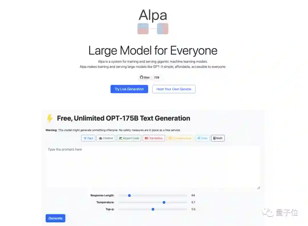 如果用户现在就想尝试更多的超参数,在网站上体验不同的生成技术,可以通过使用团队做出的一个系统Alpa(用来训练和服务大模型),自己增加相关服务的设置。