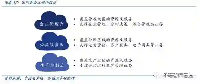 “国网云”是泛在电力物联网的计算平台和算法平台,包括企业管理云、公共服务云和生产控制云(简称三朵云),分别覆盖不同区域的资源及服务,由一体化“国网云”平台(简称云平台)及其支撑的各类业务应用组成。
