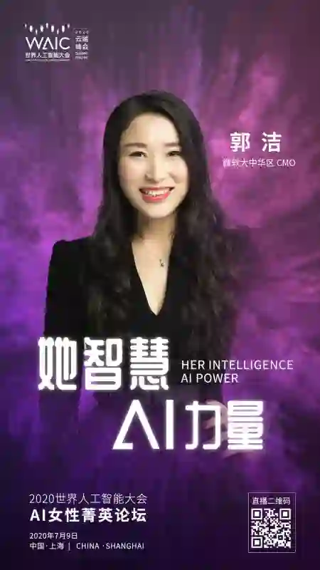同样,女性在人工智能领域中所扮演的角色也愈发重要。尤其是在人工智能在各领域都在逐步接近人类水平的现在,更是需要将女性的特质及思考方式融入在 AI 之中。2020 年 7 月 9 日,微软大中华区 CMO 郭洁将带来主题为“她智慧·AI 力量”的【AI 女性菁英论坛】,邀请全球在人工智能领域的女性从业者,共同讨论人工智能发展中的女性担当与前瞻探索。