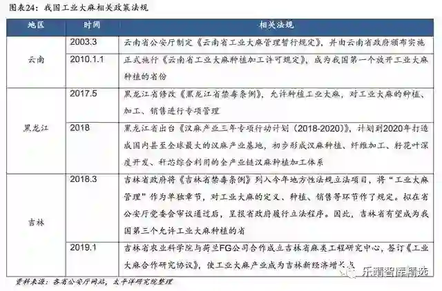 1. 云南是我国第一个放开工业大麻种植的省份,2010年正式施行《云南省工业大麻种植加工许可规定》。