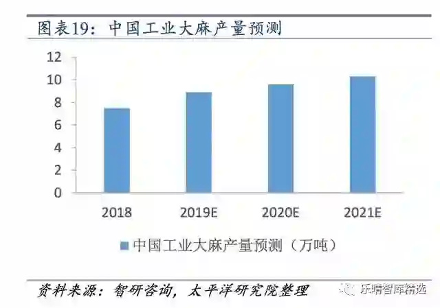 如顺灏股份子公司云南绿新获得《云南省工业大麻种植许可证》,及加工大麻花叶项目申请的批复,龙津药业规模化种植工业大麻的牧亚农业,康恩贝旗下3家公司共获2.4万亩工业大麻种植面积批复。越来越多的企业布局工业大麻领域,有望进一步催化我国工业大麻下游市场发展。