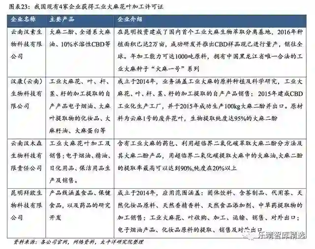 目前我国拥有工业大麻种植许可的企业超30家,获得加工许可的企业仅有4家。