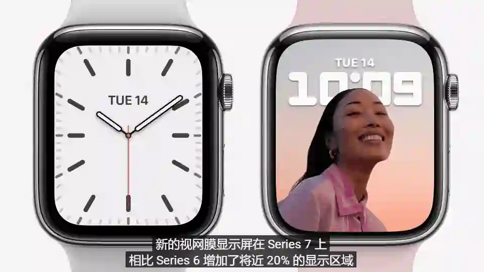 Apple Watch Series 7的另一个突出的亮点是历代最大的显示屏。
