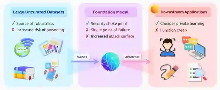 但这种整合是一把双刃剑,虽然集中化可以让研究人员集中精力在一小部分模型上来提高稳健性,减少偏差。但集中化还会将这些模型的单一故障点无限放大,并可能会对无数下游应用程序造成诸如安全风险、社会偏见等危害。并且随着越来越多的AI应用被开发出来,基础模型在当前的实践下都表现出明显和重大的社会风险。