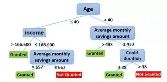 逻辑回归和决策树都是用于构建行为记分卡的流行分类技术(监督学习),它们是分析数据集的统计方法,分析独立变量的预测者(或解释者) 和因变量的响应(或结果变量) 之间的关系。在我们的例子中,我们试图根据上面给出的输入变量的值来估计给予贷款的概率。为简化起见,我们将变量数量限制在 4 个预测变量:年龄,收入,平均每月储蓄金额,信用期限之后。