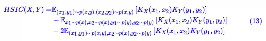 HSIC 的作用跟互信息类似,但是跟互信息不一样的是,它不需要估计两个变量的概率密度,而是直接转化为采样的形式。