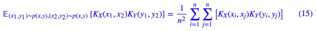 这就是我们最重要寻找的度量相关性的指标,它纯粹是采样的形式,而且 KX,KY 都是事先给定的、通常是可微的,因此这就是一个可以明确采样计算、可以直接优化的指标!