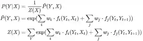 条件随机场的全称是Conditional Random Field(CRF)。它是马尔可夫随机场的一种特殊形式。前面说到了马尔可夫随机场和联合概率分布之间的计算关系,这里的条件随机场则主要对应了条件概率分布。条件随机场中参与计算的有两部分随机变量—X和Y。一般来说X被称作观察变量,也就是已知的变量,Y被称作目标变量或者隐含变量,是需要通过模型求解的变量。CRF的出现与贝叶斯公式有关: