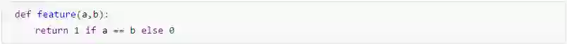 举个例子,有一个由两个灰白像素随机变量组成的Factor,每个变量的取值范围为[0,255]的整数。如果用Factor表示,这个Table将会有256*256=65536个条目,但是如果这个Factor中表示的亲密关系和两个像素的值是否相等有关,像素值相等是关系为1,不相等为0,那么用Feature表示需要写成: