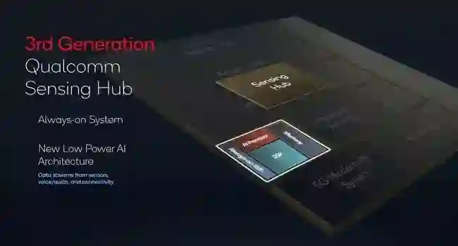 此外,骁龙 8 传感器中枢 Sensing Hub 里也加入了一个新的低功耗 AI 子系统,甚至配有一个专用的 ISP,这也是骁龙 8 上第 4 个独立的 ISP。这个 ISP 一直保持开启状态,配合 AI 子系统,让你的手机可以在息屏状态下一直启用某个前置摄像头来持续追踪你的脸,当摄像头发现你在看它时,它就会在熄屏状态下直接解锁,而你移开视线,它就会重新锁屏。