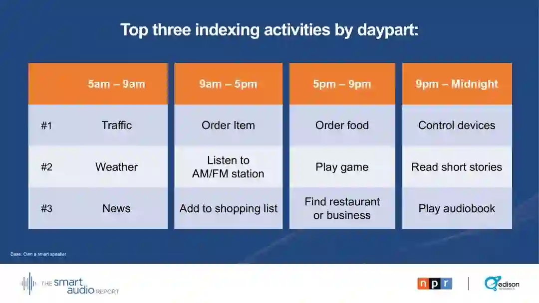 NPR 的 CMO, Meg Goldthwaite说:“智能音箱所有者关闭电视,关闭笔记本电脑,花更多时间听新闻、音乐、播客和书籍。这助长了对更多音频内容的需求。”